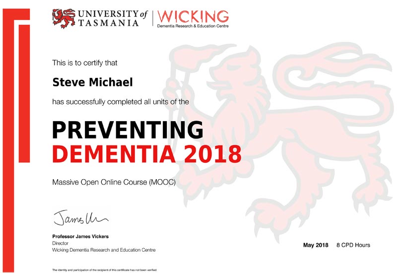 Senior Home Solutions certificate preventing dementia Preventing Dementia